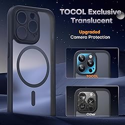 Upgraded Magnetic Charging: Upgraded for iPhone 14 pro max Magnetic Case, better compatible with all for MagSafe chargers, providing a more stable, compatible, and faster charging experience. With 18N magnetic power. Only for iPhone 14 pro max 6.7 inch Mil-Grade Drop Protection: This shock-absorbing 14 pro max case is made of TPU cushioning material, has a four-layer cushioning structure, and is equipped with 360° airbags to effectively cushion drop damage, no longer worry about your phone falling and scratching Designed for Camera Safety: TOCOL case for iPhone 14 pro max upgraded camera surround protection, integrated with the case. The camera frame is 0.8mm higher than the camera lens, which can protect your most precious camera lens from scratches and collisions Slim and Comfortable Design: This 14 pro max matte phone case features a premium translucent surface and upgraded nano-oil-resistant coating, providing a silky, non-stick feel. Ultra-thin 0.05" profile, retains the sleek style of your phone Professional Support: Customer satisfaction is TOCOL's service tenet! This case is ONLY Fit for iPhone 14 pro max 6.7 inches!