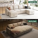 HONBAY Modular Sectional Sleeper Sofa Bed, Sectional Couch with Pull Out Bed U Shaped Modular Couch with Storage Ottoman for Living Room, Beige