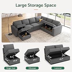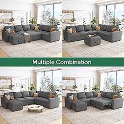 - Convenient Pull-Out Sleeper: Transform your sectional sofa into a cozy bed effortlessly with the integrated pull-out sleeper sofa, providing a comfortable sleeping surface for guests or family movie night Storage seats: The single seat, loveseat, and ottoman modules are designed with storage space underneath, which can be easily accessed by lifting the seating cushion, keeping your living space organized and clutter-free Tool-free Assembly: This sectional sleeper sofa bed requires no tools for assembly, allowing you to enjoy your furniture piece without any hassle or frustration Multi-Functional Comfort: Designed with a sturdy frame and plush cushions, it ensures both durability and comfort for everyday use. Seamlessly transition