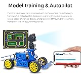 Model training & Autopilot: The XR F3 robot is a autopilot robot car upgraded based on AI neural network and deep learning framework Tensorflow. The Raspberry Pi is used as the main controller and adopts the Ackerman chassis structure design. While using the structural advantages to reduce power consumption, the car's steering is more stable, faster and more accurate, which promotes the efficiency of robot learning and research. AI visual gameplay: Simulation training can be carried out on the map, after in-depth data analysis is completed, in the automatic driving mode, the car can realize automatic driving along lines and recognition of sidewalks, traffic signs, traffic lights and other functions through the camera. (With a 3.5 x 2.9m (138 x 114 in) curved driving map) Intelligent anti-collision: The front end of the robot vehicle is equipped with an ultrasonic sensor. When in automatic driving mode, it will continuously scan for obstacles ahead and automatically stop when it falls below a safe distance. Effectively prevent rear-end collisions when multiple vehicles are driving. The body is equipped with a OLED display, through which the status of the robot can be observed in real time. Multiple Control Methods: This robot kit comes with a remote control handle and user interface that can be accessed from a mobile device or PC. It is recommended that you have some basic understanding of programming basics before using this kit. XiaoR provides professional pre-sales and after-sales services. If you have any questions or issues about the product or program learning, please feel to contact us. What you will get: Python programmable self-driving robot kit, using a metal Ackerman chassis structure. The chassis is pre-assembled and can be used by simply installing a camera. Includes Raspberry Pi 4B, PWR.A53 expansion board, TT motor, 12V rechargeable battery, expansion list, paper instructions, ultrasonic sensor and camera. High-performance hardware combined with paper/electronic course content.