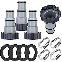 - Features: Color: Gray Material: Plastic Size: Adapter: Suitable for 1.5 or 1.25 inches diameter hoses Clamp: Adjustable Package contains: 4 X pool hose adapters; 4 X stainless steel clamps; 4 X rubber washers Tips: 1. Manual measurement, please allow slight errors in size. 2. Away from the fire.