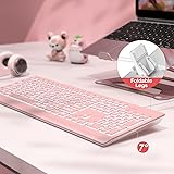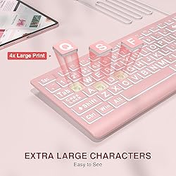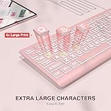 • SABLUTE Large Print Backlit Keyboard, Wired USB Lighted Computer Keyboards with 7-Color & 4 Modes Backlit, Oversize Letters Keys Easy to See and Type, Quiet Keyboard Compatible for PC, Laptop (Pink)