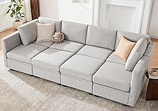 EASY ASSEMBLY & MODULAR DESIGN: The modular sectional sofa boasts an effortless setup. There's no need to worry about complex procedures or tools - we've taken care of everything for you. Its modular design offers versatility, enabling you to rearrange the components according to your preferences. Whether you prefer a traditional layout or seek a sleeper sofa bed for accommodating your guests'sleep needs or movie nights, this sectional sofa meets your ever-changing requirements. COMFORT & FUNCTIONALITY: The padded seat cushion of the modular couch is crafted from high-quality foam and premium spring cushions, combining excellent support with exceptional softness for enhanced relaxation. In addition, there is a large capacity of built-in storage underneath each modular sofa seat. It offers practical solutions for organizing your living space. STURDY CRAFTSMANSHIP: Precisely crafted with attention to detail and excellent workmanship, this sectional couch's frame is made of solid reinforced hardwood for durability, stability and sturdiness. The high-quality materials used in its construction ensure its longevity, allowing you to enjoy years of reliable use without sacrificing style or comfort. Whether you're hosting a party or hanging out with the family, this sectional sleeper sofa will easily withstand daily wear and tear. PREMIUM FABRIC QUALITY: The sleeper sectional is upholstered in a soft, skin-friendly polyester fabric. Pamper your skin. Add a touch of luxury to your living room. It is also pet-friendly and easy to clean. The material is resistant to pet hair and stains, making it easy to clean and maintain. Whether it's muddy paw prints or shedding fur, simply wipe or vacuum away the mess without worry. ADJUSTABLE ERGONOMICS ARMRESTS/BACKRESTS: Compared to other modular sectional, its adjustable armrests/backrests have three reclining positions, which provide different seat widths to cater for different body heights of seating experience. The ergonomic design ensures optimal support for your back and shoulders, allowing you to relax in ultimate comfort. Whether you are lounging alone or entertaining guests, the adjustable ergonomic design enhances your seating experience.