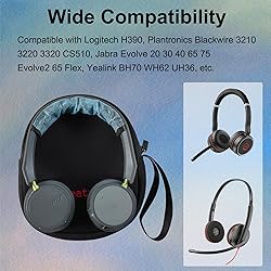 - CAUTIONS: The headphone case can be stretched for various sized office computer headsets within this size range: 8.3*7.2*0.9inches(21*18.3*2.4cm). Please check the sizes of your headphones and our bag before purchasing, and for other headphones, please contact us for Compatibility Guide. Compatible with the following headphones(including but not limited): Jabra: Jabra PRO Series: 920, 930, 935, 9450, 9460, 9465, 9470, 9400BS. Jabra GN Series: GN1900, GN2000, GN2025, GN2100, GN9120, GN9125. Jabra BIZ Series: BIZ 620, BIZ 1100, BIZ 1500, BIZ 1900, BIZ 2300, BIZ 2400II. Jabra UC Voice: 550 MS, 750 MS, 550A. Jabra Evolve: 20, 30, 40, 65, 75, Evolve2 65 Flex. Jabra Engage: 50, 50 II Wired, 55, 65, 75. Plantronics: Plantronics CS Series: CS510, CS510-XD, CS520-XD. Plantronics SP Series: SP7, SP8, SP11, SP11-A, SP11-C, SP12. Plantronics HW Series: Supra Plus Encore HW111N, HW291N, HW510, HW510V, HW520, HW520V, HW251N, HW261N, HW710, HW720. Plantronics Blackwire: 3310-A, 3310M-A, 3315-A, 3315M-A, 3310-C, 3310M-C,3315-C, 3315M-C, 3320-A, 3320M-A, 3325-A, 3325M-A, 3320-C, 3320M-C,3325-C, 3325M-C, C215, C225, C310, C320, C3210, C3210 USB-C, C3220, C3220 USB-C, C3215, C3215 USB-C, C3225, C3225 USB-C. Plantronics EncorePro310/320 Series, Plantronics EP310/320. Plantronics: H251, H251N, H261, H261N, H351, H351N, H361, H361N, H51, H51N, H61, H61N, H91, H91N, H101, H101N. Poly Voyager: 4210, 4310, 4320, Focus, Focus 2. Plantronics Savi: 8200 Series, 8210, 8220, 7210, 7220, W710, W720. Yealink: BH70, WH62, UH36, YHS33 Series. Logitech: H390. We offer 45 days money back & 1 year worry-free guarantee for our products. If you have any questions about the headphone case, pls be free to contact us Features: Color: Black Weight: About 69g/0.15Ib Size: 8.3*7.2*0.9inches/21*18.3*2.4cm Design: Inner mesh pocket & sturdy zipper Material: Neoprene(SBR) —— durable, soft, elastic, shockproof, waterproof, insulated