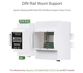 - DIN rail ABS Case for Raspberry Pi 5, DIN rail mount support, ABS material, clear top window, large inner space Compatible with various Raspberry Pi HATs, the large inner space allows accommodating an extra add-on. For example: PoE HAT (F),RS485 CAN HAT, 2-CH RS485 HAT How to install 1. press the rail lock by forefinger, then push it out by thumb as the picture shown 2. remove the bottom panel from the main part 3. fix the Raspberry Pi onto the bottom panel by screws 4. put on the bottom panel, aligning it with the buckle and USB connectors 5. snap another side 6. insert the rail lock (note the different sides, don't be upside down) Package Content PI5-CASE-DIN-RAIL-B (with screw 2PCS) x1