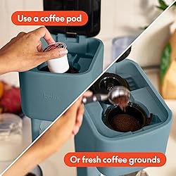 • Introducing the bella Single-Serve Coffee Maker, the perfect blend of convenience and style for your morning routine. This compact and powerful 1000-watt machine brews single servings of coffee from 6oz to 14oz, letting you customize your cup just the way you like it. Whether you prefer coffee pods or freshly ground coffee, the bella automatic coffee machine has you covered with a coffee pod adapter and a reusable coffee grounds filter, giving you the flexibility to brew your favorite flavors. Designed with your busy mornings in mind, the adjustable drip tray easily accommodates travel mugs up to 7” tall, so you can brew and go with ease. The slim profile of our barista coffee machine fits neatly on any countertop, and the cord tie feature keeps your space tangle-free and organized. With just one touch, you can enjoy a fresh, hot cup of coffee, while the carefree auto shut-off gives you peace of mind when you’re rushing out the door. Available in four chic bella colors—Oatmilk, Surf, Plum, and Blossom—this portable coffee maker for travel not only delivers on performance but also adds a touch of modern elegance to your kitchen. Whether you’re a coffee enthusiast or just need a quick caffeine fix, the bella single coffee maker makes every brew simple, stylish, and satisfying.