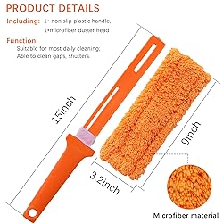 【High-Quality Microfiber】: The duster has a total length of 15 inches, with a lightweight plastic handle that is perfect for handheld cleaning. It provides a comfortable grip, ensuring that you won't feel tired easily.Our 4 Pack of Microfiber Dusters is made from microfibers that are soft and gentle on surfaces while offering exceptional dust absorption. 【Flat Design】: The flat design allows for convenient cleaning of hard-to-reach areas and narrow gaps, effectively capturing dust from blinds, furniture, computer keyboards, and car interiors. 【Electrostatic Dust Adsorption】: These dusters feature electrostatic properties that attract and hold dust particles, ensuring a thorough and efficient cleaning process without releasing dust into the air. 【Detachable and Washable】: The duster heads can be easily detached for hassle-free cleaning and are washable, allowing for repeated use and maintaining their effectiveness over time. 【Versatile Application】: This pack of dusters is suitable for various cleaning tasks in your home, office, or car. From cleaning blinds to dusting furniture, computers, and keyboard, these dusters have got you covered. 【What You Get】: 4 pack microfiber duster.
