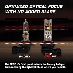 • Features Advanced TST LED Technology for industry-leading performance. Internal cooling for superior reliability. Fully integrated design, no wires or external drivers. Direct replacement bulb with compact fitment. Backed by limited lifetime warranty. Designed and engineered in USA (Patents Pending). Introducing the SL2 Pro LED fog light bulb! As a replacement for the popular SL1 LED fog light bulb, the new SL2 Pro LED features some major upgrades: next-generation TST LED technology, an integrated top-mount fan, and a fully-integrated, wire-free design. As a direct plug-and-play replacement, it provides a significant increase in output, in a compact package. Next-Generation TST Technology. The SL2 Pro features new thermal separation technology (TST) LEDs. TST LEDs are designed with electrical connections on the top which lowers thermal resistance, allowing the SL2 Pro to run at higher power levels than traditional LED fog light bulbs, while maintaining focus. Correct Optical Focus. The SL2 Pro LED fog light bulb was engineered to focus light just like your original bulb, matching the original beam pattern while providing an increase in total output. Instead of using the smallest LEDs possible which can lead to streaks, lines, and harsh cutoffs, the SL2 Pro was optimized to provide a smooth beam pattern, while maintaining focus. Internal Cooling. The SL2 Pro features an integrated top-mounted fan which provides maximum cooling efficiency, superior thermal management and long-term reliability. Since the fan is sealed inside the housing, there's no concerns about damage from dust or moisture over time. NOTE: LED fog light bulbs are legal in the USA for Fog Light use only. Not compliant with DOT / FMVSS108 and not street legal in the USA for Headlights. International legality varies by country.