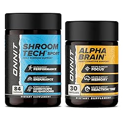 ONNIT Cognitive & Endurance Support Bundle: Alpha Brain Nootropic Capsules (30 Count) + Shroom Tech Sport Exercise Support Capsules (84 Count), IGEN Non-GMO Tested Focus, Energy & Endurance Pack of 2