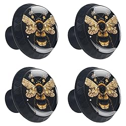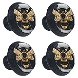 KikandKo 4-Piece Drawer Knobs - Bee and Flowers Black Kitchen Cabinet Hardware, Glass Knobs for Bathroom 35MM