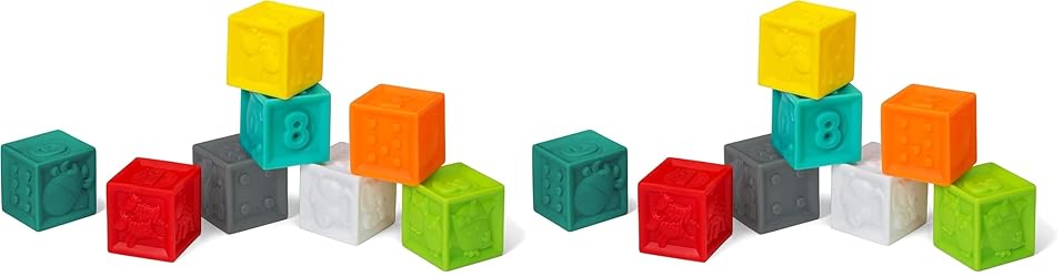 The information below is per-pack only BABY-FRIENDLY: This 8-piece set of building blocks are made from super soft BPA-free material. This means no more accidental ouchies for baby and you. Your baby can stack the blocks or play with them individually by squishing their must-squeeze soft material SENSORY DELIGHT: Give your baby more options during playtime and introduces them to diferent colors and textures ENDLESS FUN: Inspires imagination with open-ended play possibilities that keep playtime fun and engaging SUPPORTS FINE MOTOR SKILLS: Perfectly sized for little hands to hold and stack, while supporting developing fine motor skills INFANTINO, SMARTLY DESIGNED PRODUCTS FOR HAPPY PARENTING: We design smartly, we have fun, and we're overjoyed when an idea evolves full circle into a product loved and used daily by parents everywhere 6 Months+ BPA Free Soft and squeezable Fun colors, numbers, animals and shapes