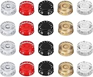 5 colors Multiple choices: You will receive 20 pieces of the guitar knobs in 5 colors,including Black,Gold,Transparent,Grey and Red colors,4 pieces for each color. Enjoy them to customiz your guitar! You're sure to find something you love,or you can mix and match the knobs on your guitar to create a truly unique look that reflects your personality. Quick Identification for Needed:With different colored knobs, you can quickly identify which knob controls what, making it easier to adjust your guitar.Sometimes you can switch up the knob colors based on your mood or preferences, creating a variety of looks for your guitar. Notable size details: Each speed control knob measures about 11.8 mm/ 0.46 inch in height, about 23.7 mm/ 0.93 inch in top diameter, and about 26 mm/ 1.02 inches in base diameter; The top hat volume knob fits pot, approx. 0.24 inch in diameter, please double check the spline of your pot before ordering. High Quality: These Electric Guitar Knobs' Numbers are inset, clean and brigh.They maded of High quality Acrylic for durable and long-lasting use. Lightweight for portable carry. The embossed numbers 0-10.Suitable for most guitars.Give your guitar a vintage look and make it stand out.And the price is value for it, buying a set of 20 knobs is cheaper than purchasing each one separately, giving you better value for your money. Easy Replacement:The Guitar knobs used to replace the dirty, dingy and old knob,If your knobs are dirty,dingy and old,these will work great.If one of your guitar's knobs gets damaged or broken,having a set of replacements on hand ensures that you can quickly swap them out without needing to search for an exact match.And if you just want to dress up your guitar,or just make your guitar more beautiful,try it!