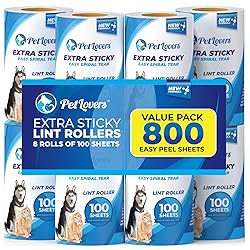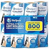 PetLovers Extra Sticky Lint Roller Mega Value Set for Pet Hair Removal, Dog and Cat Lint Remover (8 Pack Refills)