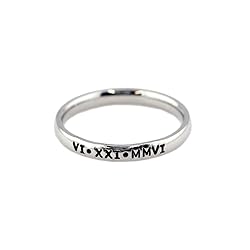 - This is a hand-stamped stackable 3mm wide stainless steel rings. Stainless steel rings are a great alternative to sterling silver and/or gold as they are inexpensive, will not tarnish, and they will not turn your finger green! These rings are available in WHOLE and HALF SIZES ONLY and are great for a Mother's Day gift or just to showcase your child(ren)'s/grandchild(ren)'s names. Personalize with UP TO 25 CHARACTERS on the tiny 3mm band. Font is as pictured (Micaila is a UNICASE Font, which means it has both upper and lowercase letters mixed together). Maximum font size is 1.5mm to ensure the letters fit on the band Names on the tiny 3mm band will be separated with your choice of heart, dot, or ampersand. The letters in the ring are darkened before shipment; however, over time it may lighten with use. Instructions are provided on how you can easily redarken the letters at home as the engraving (stamping) will always be there. Please Note: This listing is for ONE Ring. The text is stamped on a 3mm wide ring; which is made of high-polished stainless steel with a mirror-like effect. The visibility of the text may vary under different lighting conditions and viewing angles. All pictures shown are for illustration purpose only and are taken under studio lighting so actual products may vary.