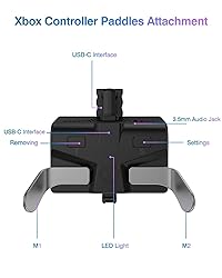 【NOTE】This paddles is only for Xbox One S/X Controller, NOT for Series S/X Controller. 【Multifunctional Back Paddles for Xbox One Controller】This upgraded multifunctional xbox controller back key attachment with 2 paddles is precision crafted to work with the official Xbox One Controller and Xbox One console, with this strike pack, you will enjoy the incredible intensity, sensitivity, precision of the controller ,impulse triggers for added feedback ,totally immersive gaming. 【2 Programmable Keys】This paddles is equiped with 2 programmable and highly sensitive metal back buttons, which can remap up to 14 key functions, with the amazing key feedback, your fingers skill will be better in competitive games, shorten your reaction time, you will not miss any chance to jump and slide , helps you take your gaming to the new level. 【3.5MM Audio Jack】This paddles attachment is built-in 3.5mm headphone jack. Just plug in your headset to use the audio function ,experience crystal-clear in-game stereo audio and immerse yourself in the wonderland of gaming. (Can't use voice with wired headset, please switch to Bluetooth headset) 【Gamepad Back Keys Memory Function】When you come back with the one controller again, it will stay the last programming functions, which makes it more convenient and faster for you to play games. If you don't want to keep the setting, reset the new programming . 【Paddles Service 】The package includes: 1* Back button attachment, 1* 9.8ft Type-C cable, 1* User manual., Any question or need any help , please feel free to contact us , we will always here help you out within 12 hours .