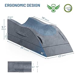 Adjustable Height: Our leg elevation pillows feature a unique design with two adjustable height options, ranging from 6.3 inches to 9.1 inches. This allows you to raise your entire leg above heart level, regardless of your height. The external disassembly feature makes adjusting the height a breeze, ensuring maximum comfort and support for your legs during rest or recovery Soft and Supportive Memory Foam: The top layer of our leg pillows is made of more soft memory foam with better resilience, providing exceptional comfort and ensuring a refreshed sleep experience even with prolonged use. The bottom two layers are constructed with high-density foam, offering ample support that retains its shape over time. Say goodbye to discomfort and deformity caused by inferior leg pillows Ergonomic Design for Optimal Recovery: Our wedge pillows are specially designed with a 45º incline, making them ideal for post-surgery recovery, leg injuries, or reducing swelling. The ergonomic U-shaped groove and insert pad help keep your leg securely in place, preventing any slipping off while you sleep. This promotes better blood circulation and alleviates leg pain, especially for those undergoing knee surgery, hip or femur replacement, or recovering from leg injuries Convenient and Secure Features: We understand the importance of convenience and safety. That's why our leg pillows come with multiple handles for easy positioning, whether you're using your left or right hand. The front handles allow effortless pulling and adjustment, while the side handle ensures convenient portability. Additionally, the non-slip silicone particle design on the bottom of the pillow cover prevents any unwanted movement during use, providing extra security and peace of mind Luxurious Cover with Enhanced Breathability: The short plush material offers a cozy feel against your skin, making it perfect for lounging or sleeping, is breathable and healthy.Additionally, the large U-shaped opening zipper allows for effortless removal of the cover for convenient machine washing