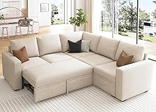 - Convenient Pull-Out Sleeper: Transform your sectional sofa into a cozy bed effortlessly with the integrated pull-out sleeper sofa, providing a comfortable sleeping surface for guests or family movie night Storage seats: The single seat, loveseat, and ottoman modules are designed with storage space underneath, which can be easily accessed by lifting the seating cushion, keeping your living space organized and clutter-free Tool-free Assembly: This sectional sleeper sofa bed requires no tools for assembly, allowing you to enjoy your furniture piece without any hassle or frustration Multi-Functional Comfort: Designed with a sturdy frame and plush cushions, it ensures both durability and comfort for everyday use. Seamlessly transition between modular couch and sleeping sofa modes with this versatile sofa bed Modular Customization: Tailor your seating arrangement to perfection with this modular sleeper sofa, offering infinite configurations to suit your space. With six versatile modules, including single seat, pull-out bed, loveseat, ottoman, corner seat, and armrests, the possibilities for customization are endless