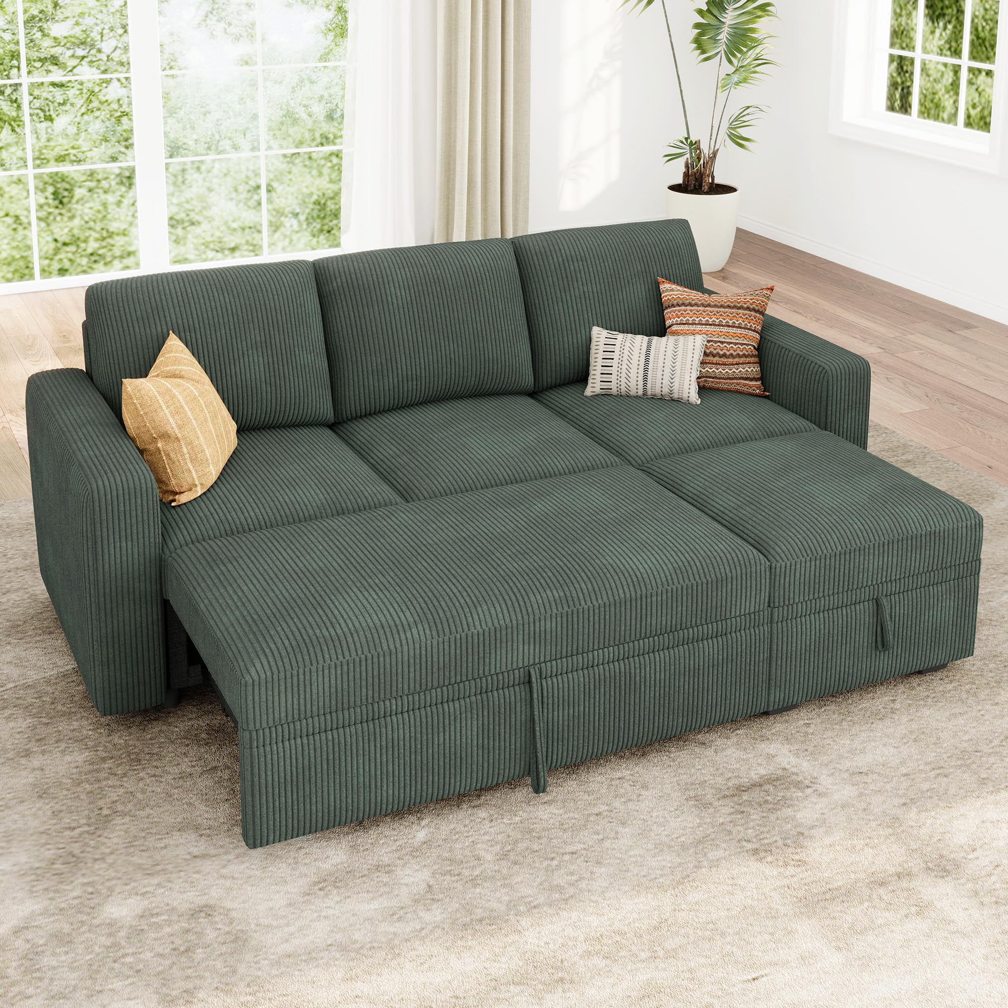 Convenient Pull-Out Sleeper: Transform your sectional sofa into a cozy bed effortlessly with the integrated pull-out sleeper sofa, providing a comfortable sleeping surface for guests or family movie night Storage seats: The single seat, loveseat, and ottoman modules are designed with storage space underneath, which can be easily accessed by lifting the seating cushion, keeping your living space organized and clutter-free Tool-free Assembly: This sectional sleeper sofa bed requires no tools for assembly, allowing you to enjoy your furniture piece without any hassle or frustration Multi-Functional Comfort: Designed with a sturdy frame and plush cushions, it ensures both durability and comfort for everyday use. Seamlessly transition between modular couch and sleeping sofa modes with this versatile sofa bed Modular Customization: Tailor your seating arrangement to perfection with this modular sleeper sofa, offering infinite configurations to suit your space. With six versatile modules, including single seat, pull-out bed, loveseat, ottoman, corner seat, and armrests, the possibilities for customization are endless
