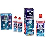 - This contact lens care bundle includes two 12oz bottles of Alcon's popular Clear Care contact lens cleaning solutions to keep your lenses fresh and comfortable. The first product is a twin pack of Clear Care Plus solution which cleans, disinfects, and surrounds lenses with long-lasting moisture using its patented HydraGlyde Moisture Matrix. Its hydrogen peroxide formula provides triple action cleaning to loosen dirt, deep clean, and remove protein deposits. The second product is a bottle of Clear Care Plus solution with a lens case. This also leverages a hydrogen peroxide formula to kill germs and bacteria with a bubbling clean. Its added HydraGlyde wetting agent reconditions lenses, providing all-day moisture and comfort. Both pH-balanced solutions are safe for all soft and rigid gas permeable lenses. They come with Alcon's signature lens cases that activate the bubbling clean and neutralize the solution into a gentle saline. With no added preservatives or chemicals, this bundle offers a complete contact lens care system focused on cleaning, disinfection, and hydration.