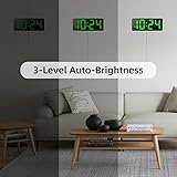 LED Digital Wall Clock with Large Display, Big Digits, Auto-Brightness, 12/24Hr Format, Modern Electric Small Silent Wall Clock for Living Room, Bedroom, Classroom, Farmhouse, Kitchen, Office - Green
