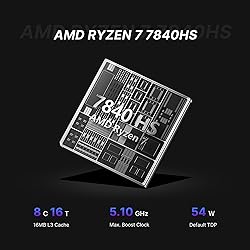 【Ryzen 7 7840HS Performance Processor】The BOSGAME mini pc is driven by the AMD Ryzen 7 7840HS (8-core/16-thread, up to 5.1GHz) with Radeon 780M graphics (12 CUs, 2.7GHz), delivering desktop-level power for AAA gaming, 4K video editing, 3D rendering, and live streaming. Multitask seamlessly between heavy workloads like CAD modeling and code compilation. 【Radeon 780M Graphics Acceleration】Equipped with AMD Radeon 780M GPU, this mini computers handle 4K@60Hz gaming and accelerates creative tasks like Blender rendering and DaVinci Resolve color grading. Stream VR content or design complex 3D models with crisp visuals and minimal latency. 【32GB DDR5 RAM & 1TB PCIe 4.0 SSD】With 32GB DDR5 4800MHz RAM and a 1TB PCIe 4.0 SSD (7,000MB/s read), this mini gaming pc tackle data-heavy workflows. Run virtual machines, edit 8K footage, or load massive game assets instantly—ideal for programmers, content creators, and power users. 【4K Triple Display & USB4.0 & Oculink】The mini pc gaming support 4K Triple Display via HDMI 2.0, USB4.0 (40Gbps + DP Alt Mode), and Oculink (PCIe 4.0 x4). Expand your workspace for stock trading, video editing, or multi-app workflows. Connect eGPUs for AI training or high-speed NVMe arrays for rapid file transfers. 【Dual 2.5G RJ45 LAN & WiFi 6E & BT5.2】Built for competitive gamers, this mini pc ryzen feature Dual 2.5G RJ45 LAN ports (5Gbps aggregate), WiFi 6E (9.6Gbps, 6GHz band), and Bluetooth 5.2 (2Mbps speed, 4x range over BT4.2). Enjoy lag-free esports, 4K streaming, and stable connections to headsets and controllers.