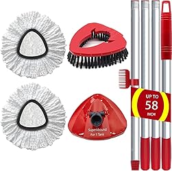 ❤【Perfect Suitable】: The mop heads replacements, mop base, mop handle and scrubber mop head is suitable for Ocedar EasyWring Mop 1-Tank System, NOT fits for O-cedar 2-Tanks RinseClean System ❤【2 Spin Mop Replacement Head】: The mop heads replacements are made of 100% microfiber, absorbent, easywring and easy to replace, machine washable ❤【30-58 IN Mop Handle】: The mop replacement handle/stick is made of 4 sections of high quality stainless steel material, rust-resistant. adjustable from 32-58", helps you reach hard-to-access corners, floors, ceilings, windows, and cars. People of different heights can use it by adjusting its height ❤【Easy to Install】: Replacement Head/Brush and Base snap together, very solid, just remove the dirty mop head and snap the new spin mop refill into the triangular mop base, after you hear a "click", it means the replacement is successful