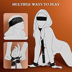 Two different product combinations can bring more matching Vibrating & detachable dildo - strap-on double dildos design ten vibration modes to bring unprecedented pleasure and continuous stimulus. And it equips two detachable dildos of different sizes, which can be used individually. The most amusing way to play is to fix one front for satisfying your partner and another behind for stimulating your vagina or anus. Adjustable knicker - upgraded wearable knicker supports to adjust the length of the waist strap and its tightness according to your needs. The ergonomic design offers snug fitness and is suitable for nearly every person. Wear the sex toy, and enjoy the unbelievable sexual feast. BDSM Neck to Wrist and Ankle Restraint Kit - This sexual bondage kit contains a total of 4 accessories (1x restraint collar, 2x handcuffs, 2x ankle cuffs, 1x blindfold), whether you are a SM beginner or experienced SM lovers, this adult toy bondage set can meet your diverse needs and bring more fun to different types of play. Various Ways of Playing to Add Interest - You can tie the restraint collar in front of or behind the body, or use it with handcuffs or legcuffs; handcuffs and legcuffs can also be used alone, and ribbons can be used to blindfold or tie hold your wrists, tease and enjoy their vulnerability, drive your lover crazy and experience the pleasure of a bondage sex toy.