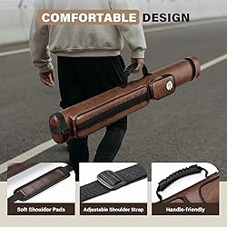 "Cue Protector": Trymaker Hard Pool Cue Case offering excellent protection for the cues.The soft cushion design at the bottom absorbs the impact when the cues fall.Inner oval divider tube is made of high-density foam sponge, offering better external impact cushioning; Inner side is lined with suede to prevent the pool cue from being damaged by friction [Sturdy and Durable]: The surface of the pool stick case is made of high-quality synthetic leather, resistant to scratches and waterproof. The meticulous stitching technique reinforces the overall structure, enhancing durability [Lightweight and Portable] This cue case is 34 1/4" long and can hold 2 cues and 2 shafts (suitable for two-piece cues of 58 inches or below, not compatible with 3/4 cues). It comes with two pockets for carrying accessories: the large pocket measures 16"x3.3"x1.4", and the small pocket measures 6"x3.3"x1.4" [Comfortable Design]: Adjustable shoulder strap on the billiard cue cases features added soft padding, reducing discomfort on the shou lders and providing a better carrying experience with enhanced comfort [Worth Choice]: Trymaker Cue Case is a worth choice for billiard enthusiasts. High-quality gift are sure to bring joy and surprise to the recipient [After Sale]: If you have any after-sales questions, please feel free to contact us. We will reply within 24 hours,and give you a satisfactory solution. Trymaker is committed to giving customers better experience.