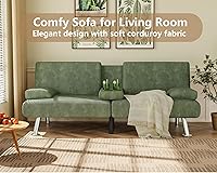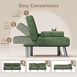 Flamaker Futon Sofa Bed Corduroy Folding Couch Adjustable Sleeper Sofa Bed for Small Apartment Upholstered Living Room Furniture Set with 2 Cup Holders Removable Armrests (Corduroy, Green)
