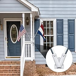Package Content: You will receive 2 pieces of flag pole holder in double holders, which can secure your flag stably. Premium Material: Our double flag pole bracket holder is made of premium aluminum alloy, strong and reliable, not easy to break or deform, perfect for outside use, can serve you for a long time. V Shape Design: This flagpole holder mounting bracket is designed with V shape, it is stable than others product, you can use it with a confidence. No tools required, just install using the screws we provide you. Fit for: The flagpole bracket outdoor measured about 3.1cm/1.22 inch in inner diameter, fits for all standard hardware flagpoles or flag stands. Wide Usages: The metal flag holder is perfect for porches, stakes, balconies, gardens, lawns, patios, front yards or backyards, even campgrounds, parades, stadiums, trucks and boats.