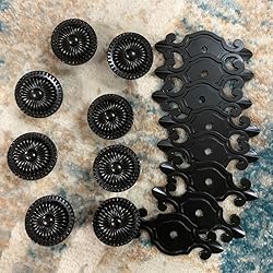 • This black retro backplate cabinet knobs is made of high quality zinc alloy materials with antique appearance look, single hole, easy to installation, it’s widely used for cabinets, drawers, kitchen, door, vintage furniture etc. Specification: Material: Zinc alloy Knob Size: L*W*H: 74*32*27mm ( 2.91*1.25*1.05 inch) Knob Weight: 53g/pcs Screw Size: 25mm/35mm (0.98inch/1.38inch) Package included: 8 pcs brass knobs + 16 pcs screws