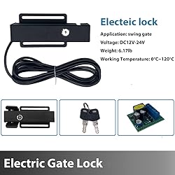 【Automatic Electric Gate Lock】This electric gate lock automatically locks and unlocks the door when activated, eliminating the need to push the door manually, saving effort and being smart. The durable electronic lock not only prevents accidental intrusions into the door system, but also protects the door from damage by strong winds, providing extra security and stability to your door opening system. 【High-quality Material】This electric door lock is made of Q235 steel, which is very strong and durable. It is also corrosion-resistant and rust-proof. It is not only weather-resistant all year round, but also extends the service life of the product. 【High Security】This sturdy gate lock increases the security of the door opening system, preventing thieves, thieves, etc. from entering your door and protecting your person and property. Suitable for most single or double swing door openers. This automatic door closer comes with 2 manual release keys as a backup plan in the event of a power outage or lost remote control. 【Easy to Install】This electric lock is designed to be easy to install without complex wiring or professional installation, and we provide you with detailed installation instructions for your convenience. 【Wide Application】Our electric door locks fit most single or double door openers and are ideal for driveway gates made of steel, wood, vinyl and plastic in panel, tube and link shapes.