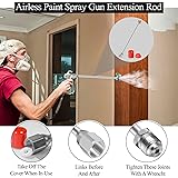【5 Sizes Universal Airless Spray Gun Extension Rod】Spray paint extension pole includes 5 different lengths, approximately 7.8 inches/20 cm, 11.81 inches/30 cm, 19.09 inches/48.5 cm, 29.13 inches/74 cm, 38.77 inches/ 98.5 cm, airless spray paint extension rod is threaded with a 7/8” thread and fits most 7/8” threaded airless spray guns. 【Premium Material】Airless spray paint extension pole is made of aluminum alloy with surface oxidation treatment, which has good rust and corrosion resistance, is not easy to break or deform, and is durable. 【Easy to Install】Paint sprayer extension rod is easy to install, just use a wrench to tighten these connections. The connection threads have anti-slip wires and anti-slip slots to reduce the risk of falling off. These pre-assembled paint sprayer extensions will save you time and increase your productivity when using airless paint extension poles. 【Wide Range of Uses】Airless paint sprayer extension pole can be easily applied to ceilings, high walls, stairs, decks and other places that are hard to reach with paint. You no longer have to drag a ladder around. When using an airless paint sprayer extension, keep hands and body away from the spray head and relieve pressure before cleaning or removing. 【Quality Assurance】If you have any problem or doubt during use,please feel free to contact us. We provide 1 year warranty and reply within 24hrs.