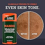 DON'T MASK IT. MANDO IT. This isn't a cover-up. Mando stops odor before it starts. SMELL BETTER EVERYWHERE - Odor control for pits, packages, and feet — think ball sacks, butt cracks, thigh creases or anywhere else you have odor but wish you didn’t. HIGH PERFORMANCE - Mando is clinically proven to block body odor all day and continues to control odor for 72 hours. POWERED BY SCIENCE - Rather than covering up odor after it forms, our formula is pH optimized to block odor before it starts. You could even call us a PREodorant! SERIOUSLY SAFE - Doctor-developed and safe for any external use. Formulated without benzene. Free of aluminum, baking soda, dyes, and parabens. Hypoallergenic and skin safe for even our most sensitive parts.