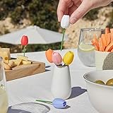 - Add a touch of floral elegance! Each fork is beautifully crafted to resemble a tulip flower and comes in a different vibrant color. It is presented in a ceramic mini vase, making it both a functional and decorative piece for your table.