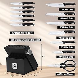 Ultimate Precision and Durability: The imarku premium sharp knife set boasts ultra-sharp blades made from Japanese stainless steel, ensuring effortless cutting and long-lasting use. With an ergonomic design and built-in sharpener, our knife set is ideal for both home cooks and professional chefs Comfortable and Safe to Use: Featuring an anti-slip handle design to ensure a comfortable, balanced grip that prevents accidental slips, imarku knives are perfect for everyday use. With a curved design that reduces hand strain and fatigue, our knives are both practical and safe to use All-in-One Knife Set: Get more done in the kitchen with our 14-piece knife set, including a chef's knife, serrated bread knife, slicing knife, Santoku knife, paring knife, utility knife, six steak knives, kitchen shears, and hardwood knife block made of FSC-Certified wood with a built-in sharpener. Each knife is neatly organized and ready to use Easy to Clean and Maintain: Cleanup is a breeze with our dishwasher-safe knife set. To maintain their sharpness, we recommend a quick rinse and gentle hand washing. The knife block can be easily wiped down to keep your storage area neat and organized Perfect Gift for Any Occasion: Surprise your loved ones with the gift of culinary expertise. Our beautifully boxed and quality-controlled imarku kitchen knife set is perfect for any occasion, including housewarming, birthdays, Christmas, or as a special treat for yourself. Any questions our professional customer support is always here for you