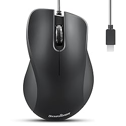 MODERN CONNECTIVITY: Our PERIMICE-221 wired mouse is tailored for contemporary needs, featuring USB Type-C connectivity that seamlessly integrates with the latest tablets, laptops, and advanced computer devices. EFFORTLESS SETUP, LIMITLESS PERFORMANCE: Dive into seamless productivity with our PERIMICE-221 wired mouse. Simply plug and play for instant action, and enjoy compatibility with USB-C devices and Windows 7/8/10/11 systems. Experience uninterrupted performance with a 4.9-foot long cord, granting you the freedom to move and create without constraints. SILENT CLICKS, ANYWHERE: Stay focused in any environment with our mouse's silent-click feature, enabling distraction-free work on trains, planes, and in shared spaces. ERGONOMIC EXCELLENCE, PERSONALIZED COMFORT: Indulge in ergonomic perfection with our mouse's sculpted design, meticulously crafted for right-handed users. Easily customize the primary button on your computer settings for a personalized fit that enhances your workflow. PRECISION REDEFINED: Elevate your computing experience with our sleek and budget-friendly mouse, engineered for pinpoint accuracy and smooth tracking. With three responsive buttons and a compact design measuring 4.41 x 2.8 x 1.54 inches (112 x 71 x 39 mm), it's the ultimate tool for effortless navigation.