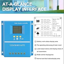 CHARGING: Solar panel regulator has multiple protecting measures to ensure and stable charging of the battery. This solar controller will help you improve the system efficiency safely and prolong the life span of the battery. LCD DISPLAY: Solar panel battery intelligent regulator has LCD display, real time monitoring of charging status, easy to operate. You can use this controller in a different place like home, industrial, commercial, etc. MPPT TECHNOLOGY: Solar controller adopts high efficiency MPPT technology to maximize solar cell utilization. With MPPT technology, guaranteeing an efficient energy collection. WIDELY APPLICATION: Solar power controller adopts compact design, suitable for solar photovoltaic battery charger and lights and other scenarios. ADAPTIVE VOLTAGE: MPPT solar controller applies multiple voltage output 12/24/36/48V to meet different needs. This solar controller helps you manage the working of solar panels and battery in solar systems automatically.