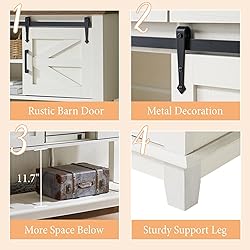 AMERLIFE Sofa Table with Sliding Barn Doors, TV Console Table, 46" Farmhouse Rustic Storage Entryway Table, Adjustable Open Shelves, Hallway, Living Room, Bedroom, Antique White