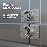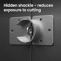 SOLID STEEL BODY: Built from #45 steel providing firm structure, rust resistance, and lasting strength. HIDDEN SHACKLE DESIGN: Fully covered lock body reduces exposure to sawing and drilling. COMPLETE SET INCLUDED: Pack contains four locks, matching hasps, and mounting bolts. INSTALLATION SIZE INFO: Hasp 7-13/16" x 4-1/2", lock 2-7/8" diameter, fits flat metal surfaces. WIDE APPLICATION: Works with vans, trucks, storage doors, and similar flat steel access doors.