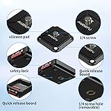 【 One Step Quick Release 】 The quick release bracket allows you to install the SnapLock board immediately with just one step. You can easily connect your camera and other devices to gimbals, Arca Swiss tablets, sliders, tripods, or straps 【Increased grip, extremely secure】Push the button to lock it extra securely to avoid it accidentally unlocking itself. 【Widely Compatible】 1/4" and 3/8" 2-in-1 screw hole on base mount is compatible with tripod, stabilizers, gimbal,‘’ monopod; 1/4 screw thread on top plate fits any cameras like DSLR, phone mount, Sports camera adapter ect 【Four-way Free Installation】38 * 38mm standard compatiblet ripod plate 【 High quality】Made of aluminum alloy, sturdy and durable. There is a rubber pad design on the top plate to prevent the bottom of the camera from being scratched