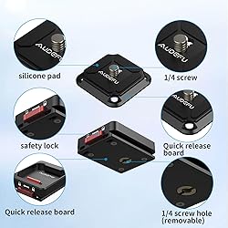 - Audefu Universal Camera Quick Release Plate Kit with Shoulder Strap Mount - Includes QR Plate, Tripod Mount Adapter, 1/4" to 3/8" Screw Thread - Compatible with DSLR camera , Monopod, Stabilizer, and Slider for Easy Mount&Release