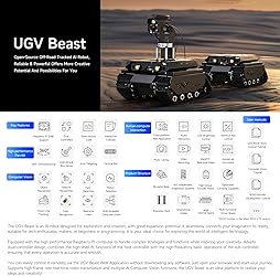 - Overview UGV Beast Open-Source Off-Road Tracked AI Robot Compatible with Raspberry Pi 5 with Dual Controllers, Computer Vision, PI5-4GB Included Package Contains : UGV Beast PI5 AI Kit For more user guide resources you may need, pls contact me via message, i will send you then via attachment.