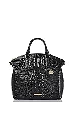 Instant icon: With a sleek silhouette and versatile design details, the Large Duxbury is one of our most loved designer handbags. Available in our signature croc-embossed leather. In the details: Interior organization including multiple pockets. Zip top closure. Back slide in pocket. Bottom feet. Carry your way: double handles. Removable adjustable crossbody strap. 4” handle drop, 13” strap drop Dimensions : 14.2”W X 12”H X 5”D Discover Brahmin: Since 1982 we've been designing luxury handbags that last a lifetime. We're committed to quality and are experts in creativity and color. We believe it's the little luxuries in life that make the moment