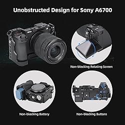 - 【For Sony A6700 Camera】Nitze T-S12A one-piece aluminum cage is compatible with Sony Alpha 6700 camera. You can firmly lock the A6700 camera by a 1/4" screw on the bottom and a M2 screw on the right side. It includes a magnetic flat-head screwdriver and a hex spanner for easy installation.