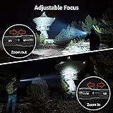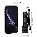 PORTABLE SMALL SIZE - Our LED flashlight is portable small size, Length: 4.2in, Diameter: 1.2; Weight 128g, fits well in your hand or pocket. Compact to fit easily into your pocket wherever you go. SUPER BRIGHT & LONG-LASTING - Equipped by LED, the beam distance of flashlight is up to 492ft. Luminous flux is about 140 lumen in full brightness. Easily light up an entire room. SKID-PROOF DESIGN & IPX4 WATER RESISTANT DESIGN - The IPX4 water resistance rating means it is perfect to use in wet condition, light rain day or snowy day. Made from military-grade aluminum, it can resist rust and corrosion. Ideal for camping, hunting, dog walking, power outage and other indoor or outdoor activities. ZOOMABLE FLASHLIGHT- Led flashlight has ability to narrow or widen the area you wish to light. You can stretch the head-pulling zoom to adjust its focus and get spot beam or flood beam you need. WHAT YOU GET- Bright and handheld led flashlight *4, AAA batteries*12 and instruction manual.