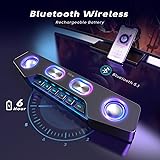 [Enhanced Gaming Sound Quality] Computer speakers offers a clear and loud sound, you can enjoy gaming pleasure and feel all the stimulation just be like at scene. [RGB Illumination] 4 kinds of RGB modes aim to beautify your using scenes, which is suitable for gaming, parties, backyards and small gatherings. Colorful lighting on the PC speakers will make you truly immerse in the music. [Delicate Design] This RGB gaming speakers has special design with keyboard-style buttons. The Desktop speakers can be placed stably even on rough surfaces and easy to carry. [Bluetooth 5.0] The wireless speaker uses Bluetooth 5.0 chip with a maximum connection range of 100ft, which is compatible with Smartphones, Laptops, Computers, Tablets, etc. for more music or gaming uses. [Easy to Use] The gaming speakers for PC has 6 function buttons and multiple audio interfaces, which is friendly for beginners or sophisticated players.