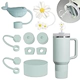 Package Includes - The stanley cup accessories set includes 2 hexagon spill stoppers, 2 square spill stoppers and 2 round lid leak stoppers, 1 pcs flower straw topper and 1 pcs whale straw cover, 1pcs Mist silicone boot sleeve, specially designed for Stanley Adventure Quencher 40oz and Stanley IceFlow 20oz 30oz tumblers water bottles. Straw covers match for 9-10mm straws. Great Practicability - Our lid spill stopper with 360° Anti-leak Design, let you no longer worry about accidentally leak from your tumbler. Silicone boot for water bottle can avoid unwanted scratches, dents, resistant, anti slip, reduce noise, extend the life of your bottle. Silicone straw covers cap for Airtight seal, anti-dust and splash proof, easy to use and healthy for you. High-quality Silicone - This water bottle accessories set are made of food grade silicone, durable, odorless, reusable. Easy to clean,wash it with your hands and dishwasher safe. Cute whale shape straw cover keep your cups from being monotonous and bringing you happiness every day. Wide Compatibility - Our spill stopper set accessories is compatible for Stanley Quencher 1.0/ H2.0 FlowState Stainless Steel Vacuum Insulated Tumbler 40oz/ 30oz. The 10mm straw cap perfectly matches the size of Stanley's original straw 10mm. Silicone boot designed for Stanley Adventure Quencher 40 oz H2.0 & Stanley IceFlow 20oz 30oz &Simple Modern 40 oz and others cup bottom diameter 2.75-2.95". Prefect Partner for Tumblers - This accessory for Stanley Cup kit is portable and convenient, you can carry and use where you need it, suitable for various outdoor activities,such as walking in the street, camping, home,hiking ,road trips or other activities. Safe for all ages.The essential partner of Stanley travel cups.