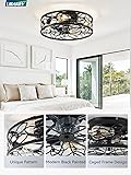 LEDIARY Caged Ceiling Fans with Lights, Black Flush Mount Ceiling Fan with Remote&App, Small Low Profile Bladeless Ceiling Fan Light Fixture for Bedroom, Kitchen, Dining Room.