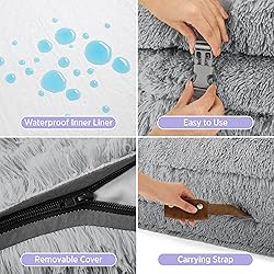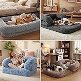 - Lesure Foldable Human Dog Bed - 3 in 1 flexible Giant Human Dog Bed for Adult People with Supportive Bolster Egg Foam, Waterproof Liner, Calming Fluffy Faux Fur Orthopedic Big Bean Bed, Light Grey